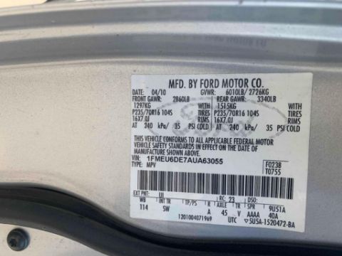 2010 Ford Explorer XLT,  Mileage 90,978, Vin # 1FMEU6DE7AUA63055, Cranks and Runs!