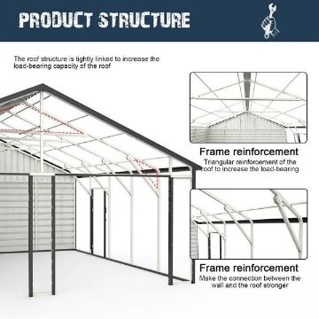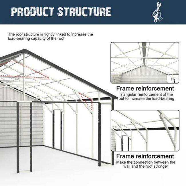 Introducing the W25'xL32.6'xH13.3' Double Garage Metal Shed, featuring a side entry door for easy access. Constructed with a robust 15 GA galvanized steel frame and a horizontal grain 3-layer splicing design, this shed offers 8' wall height for ample storage space. Durable, stylish, and built to last!